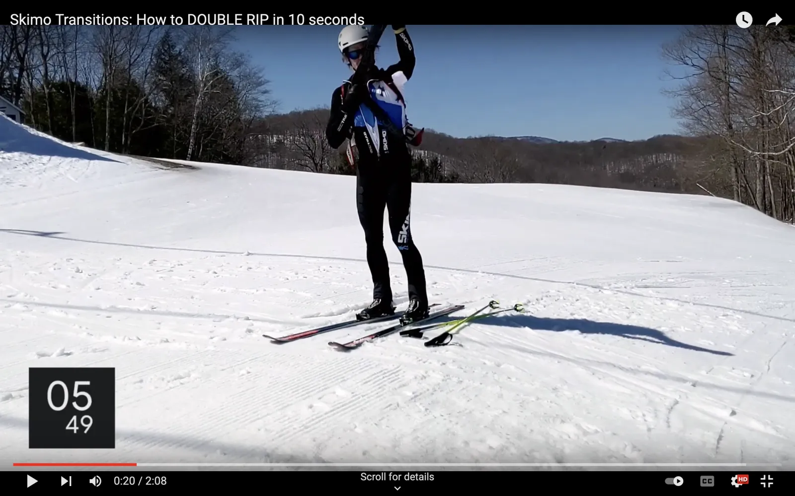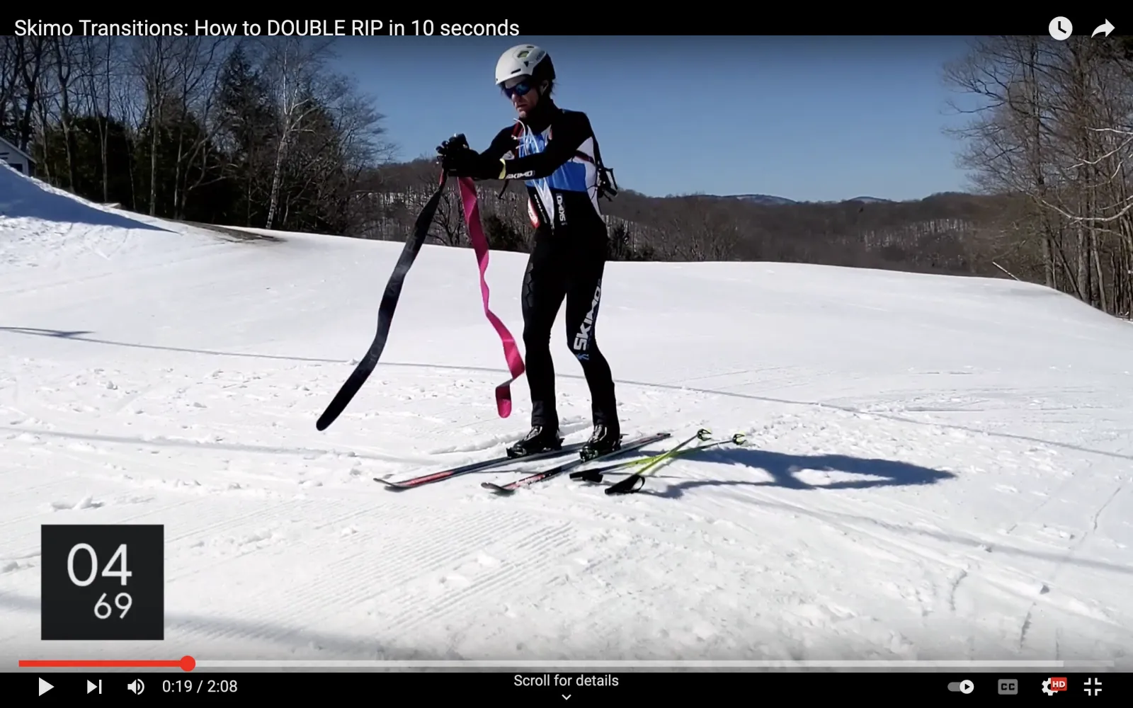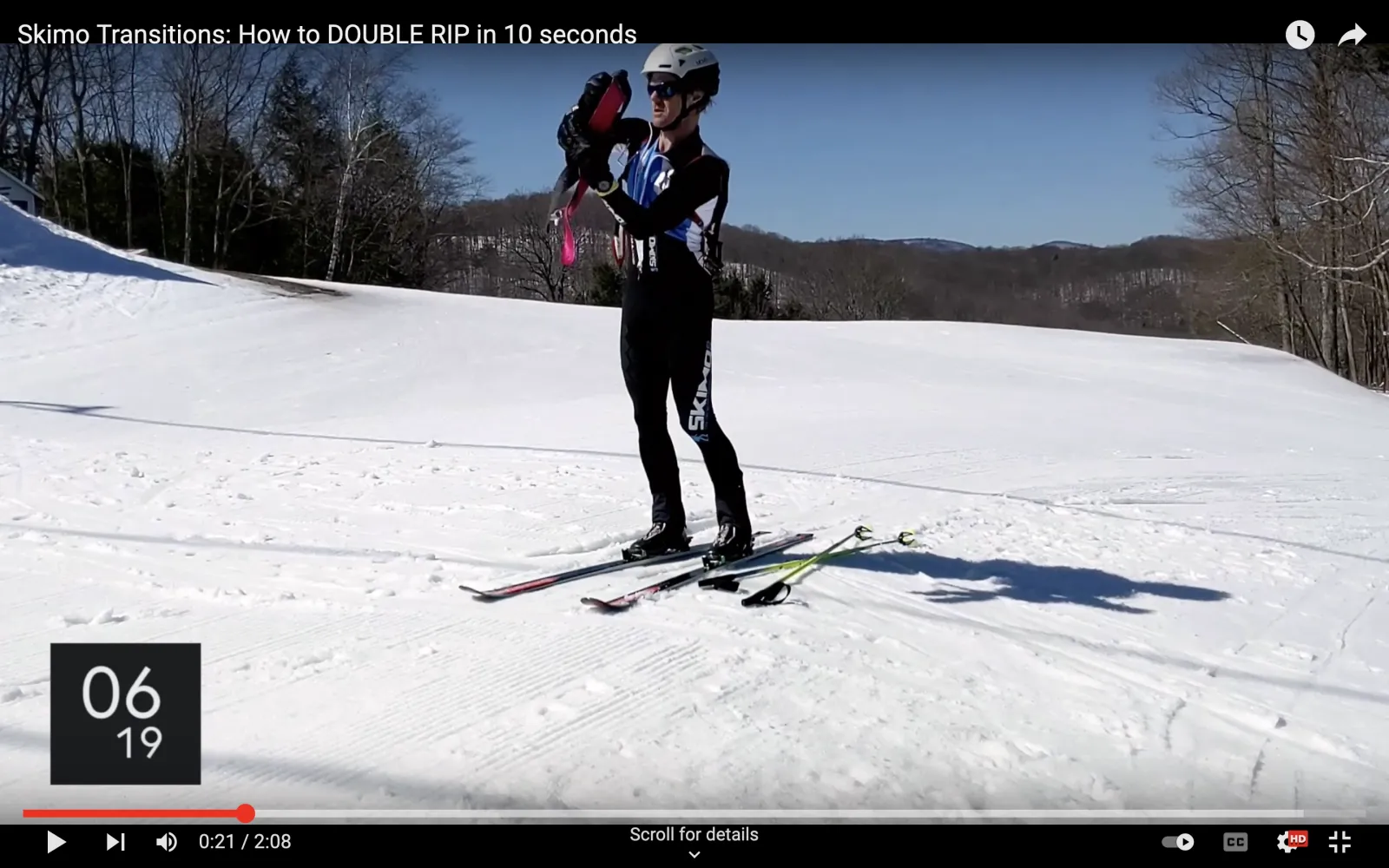 After the final ascent, the change from skinning to skiing is unique. Instead of two single-skin rips, it's much faster to double-rip both skins and stuff the sticky mess in your suit.
